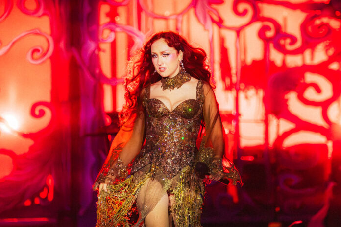 A abertura com “Femininomenon” deu o tom energético e teatral da performance, seguida por “Red Wine Supernova” e “Pink Pony Club”, que foram cantadas em coro por uma plateia visivelmente conectada com sua estética e mensagem.