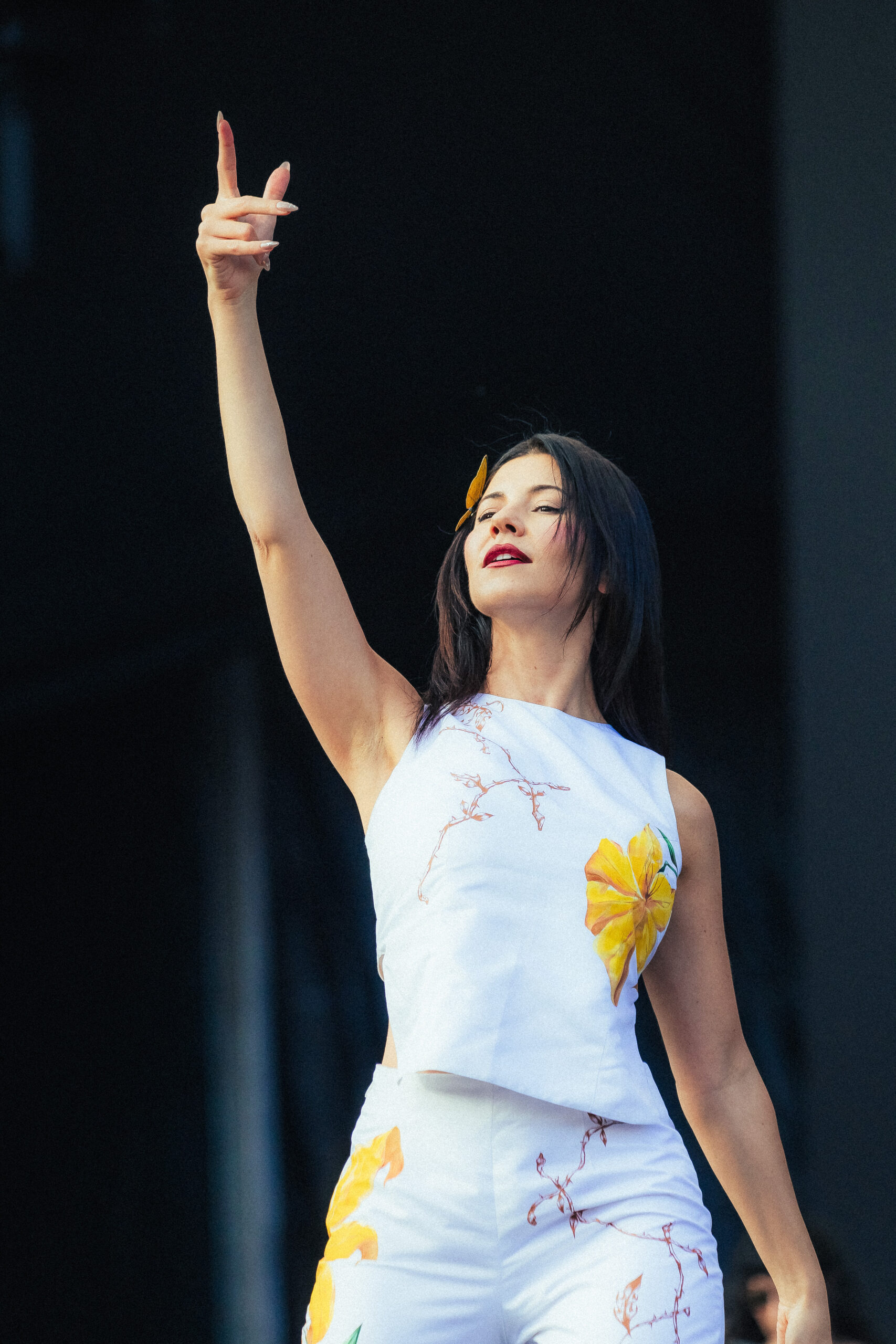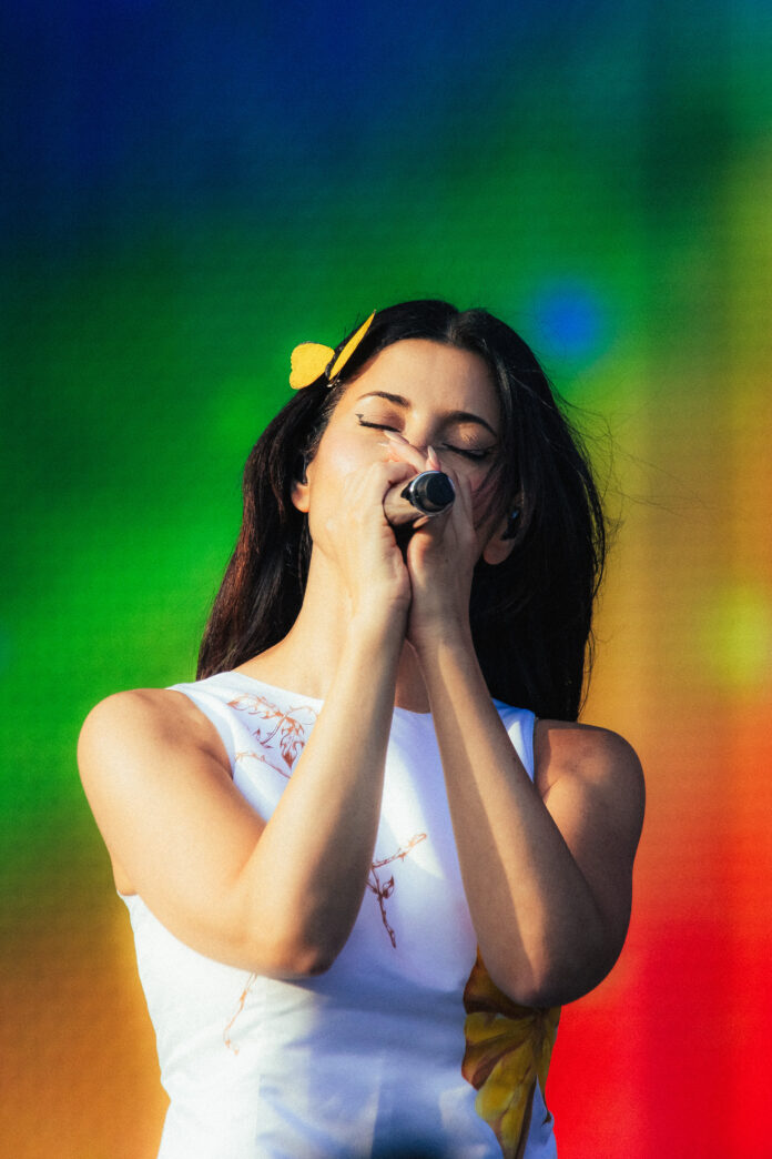 Marina (ex The Diamonds) se apresentou no Palco Budweiser no fim da tarde deste sábado (21), no Lollapalooza Brasil 2026, trazendo uma performance marcada por elegância estética e profundidade emocional – além de um show de leques a parte por conta do público.